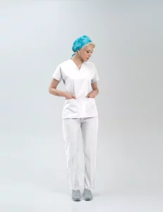 روپوش پزشکی زنانه یقه هفت – مدل کلاسیک سفید M(برند تب پوش)