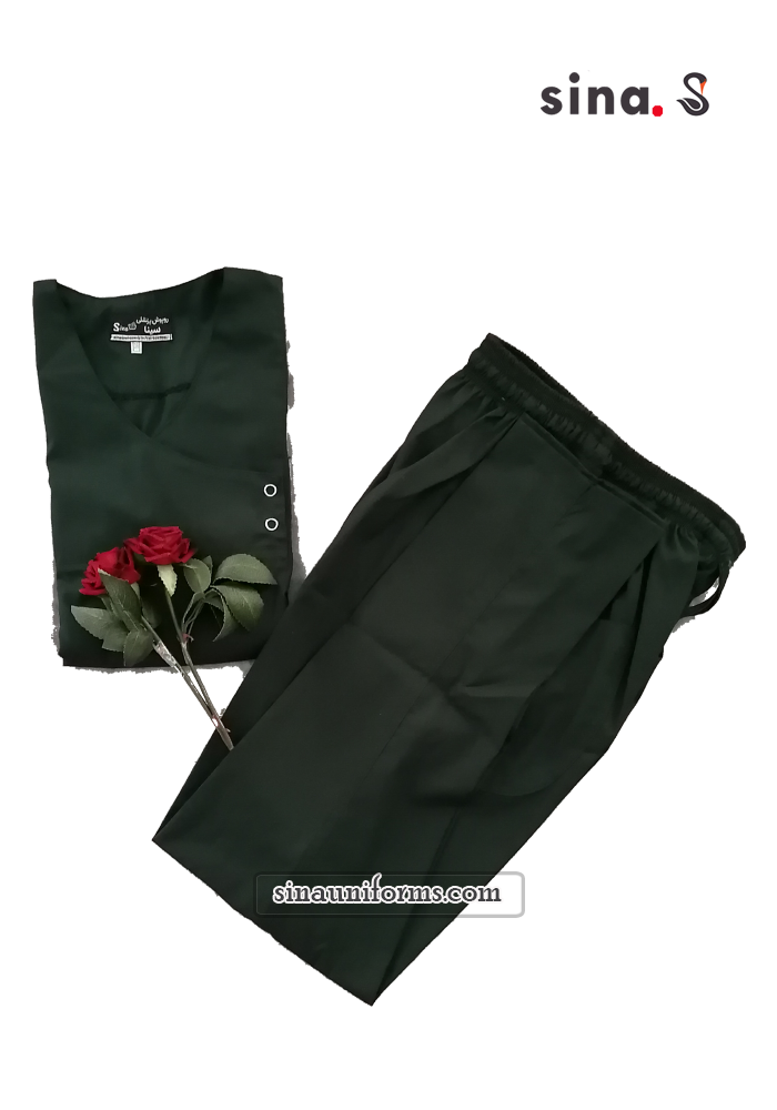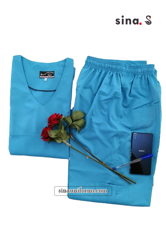 بلوزوشلوار جراحی جلو بسته رنگ آبی نفتی