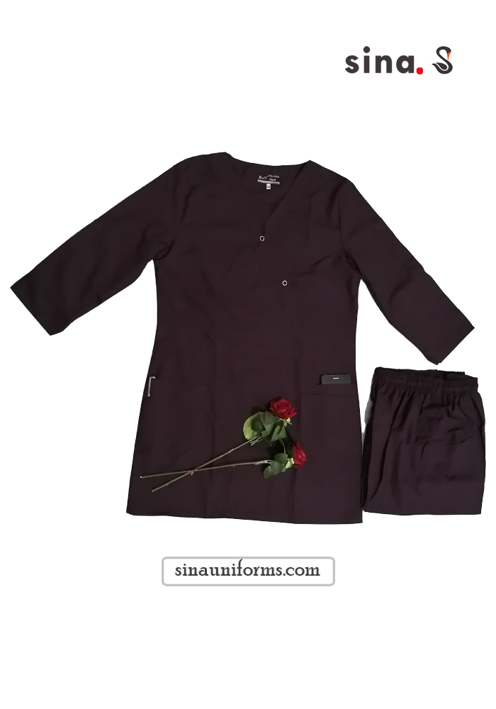 لباس جراحی زنانه شیک جلوبسته رنگ بادمجانی