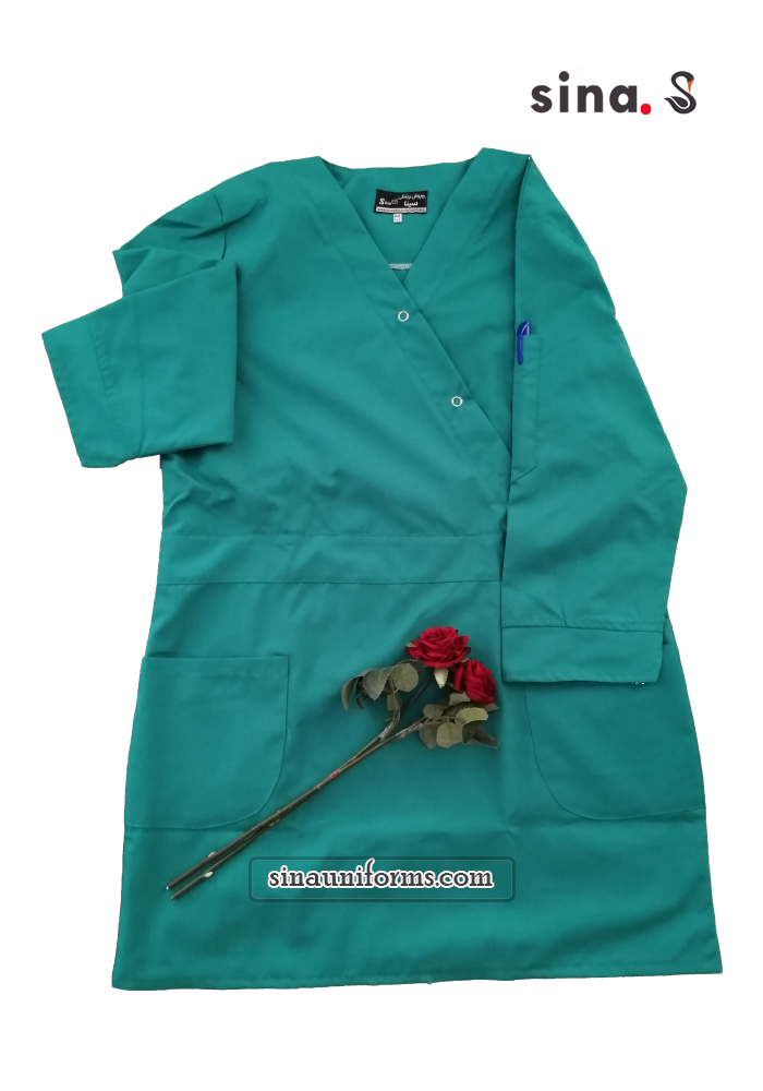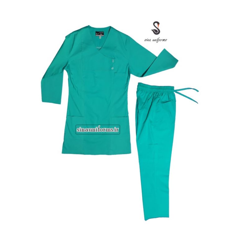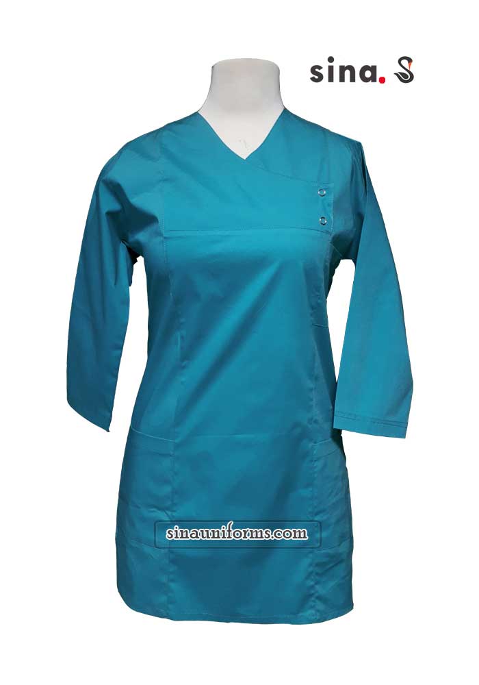لباس جراحی زنانه جلوبسته رنگ سبز فیروزه ای