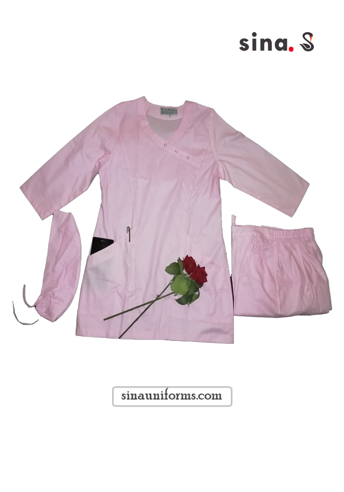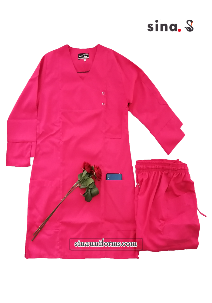 لباس اسکراب اتاق عمل ترک زنانه ترک جلو بسته رنگ صورتی