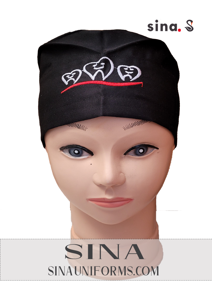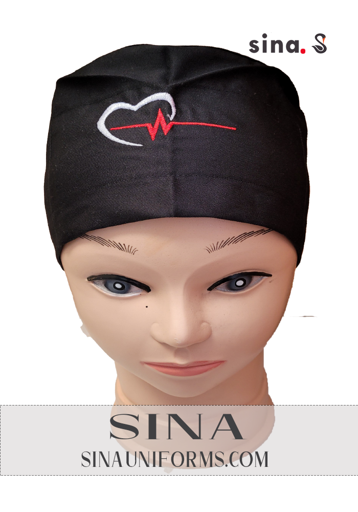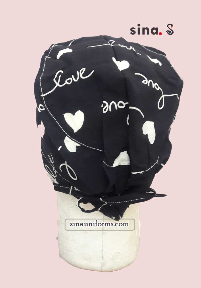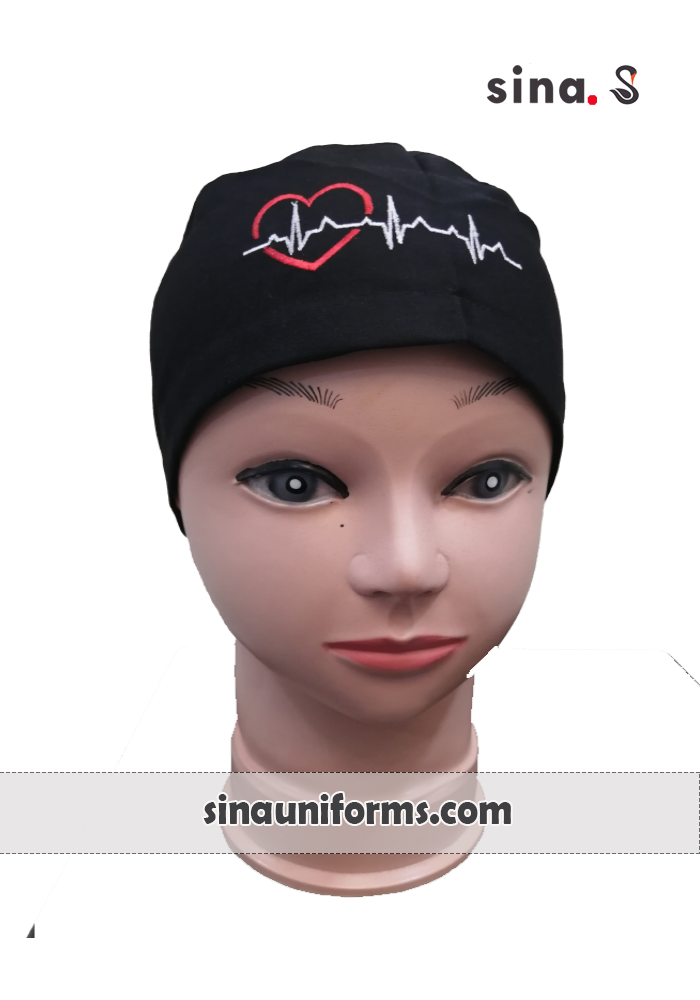 کلاه جراحی طرح قلب رنگ مشکی گلدوزی